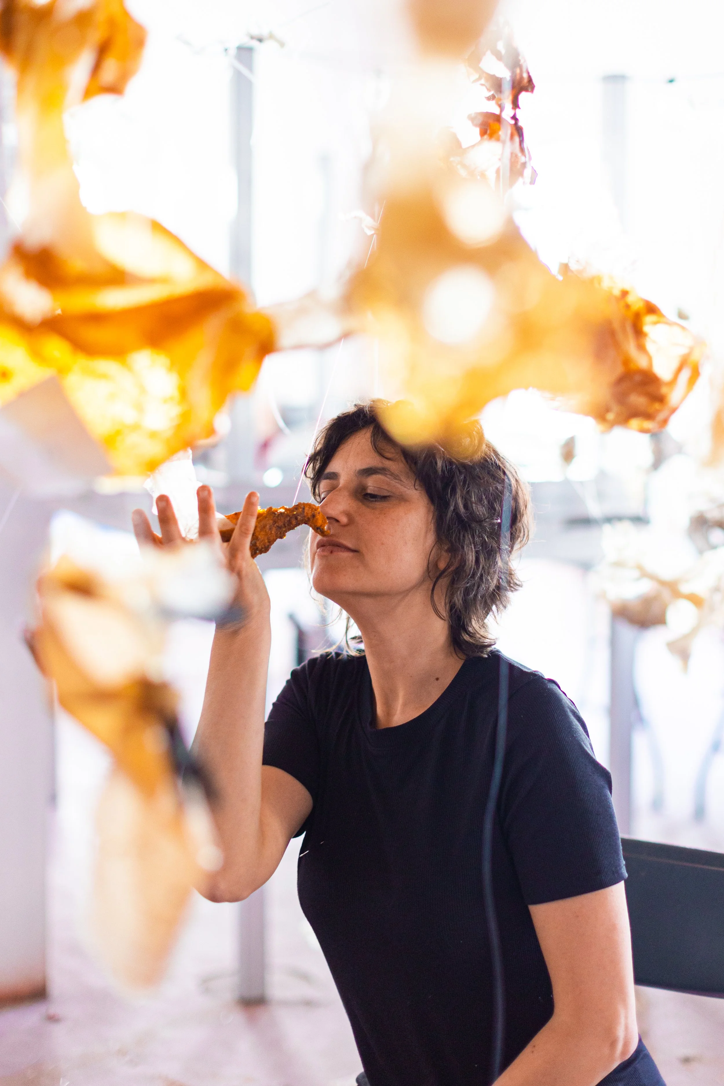 Raquel Buj is an artist whose practice explores the porous relationship between body, matter and landscape. Through biomaterials and hybrid processes that combine artisanal gestures and technological experimentation, she develops sculptural forms and site-responsive installations that investigate transformation, fragility and material disappearance.