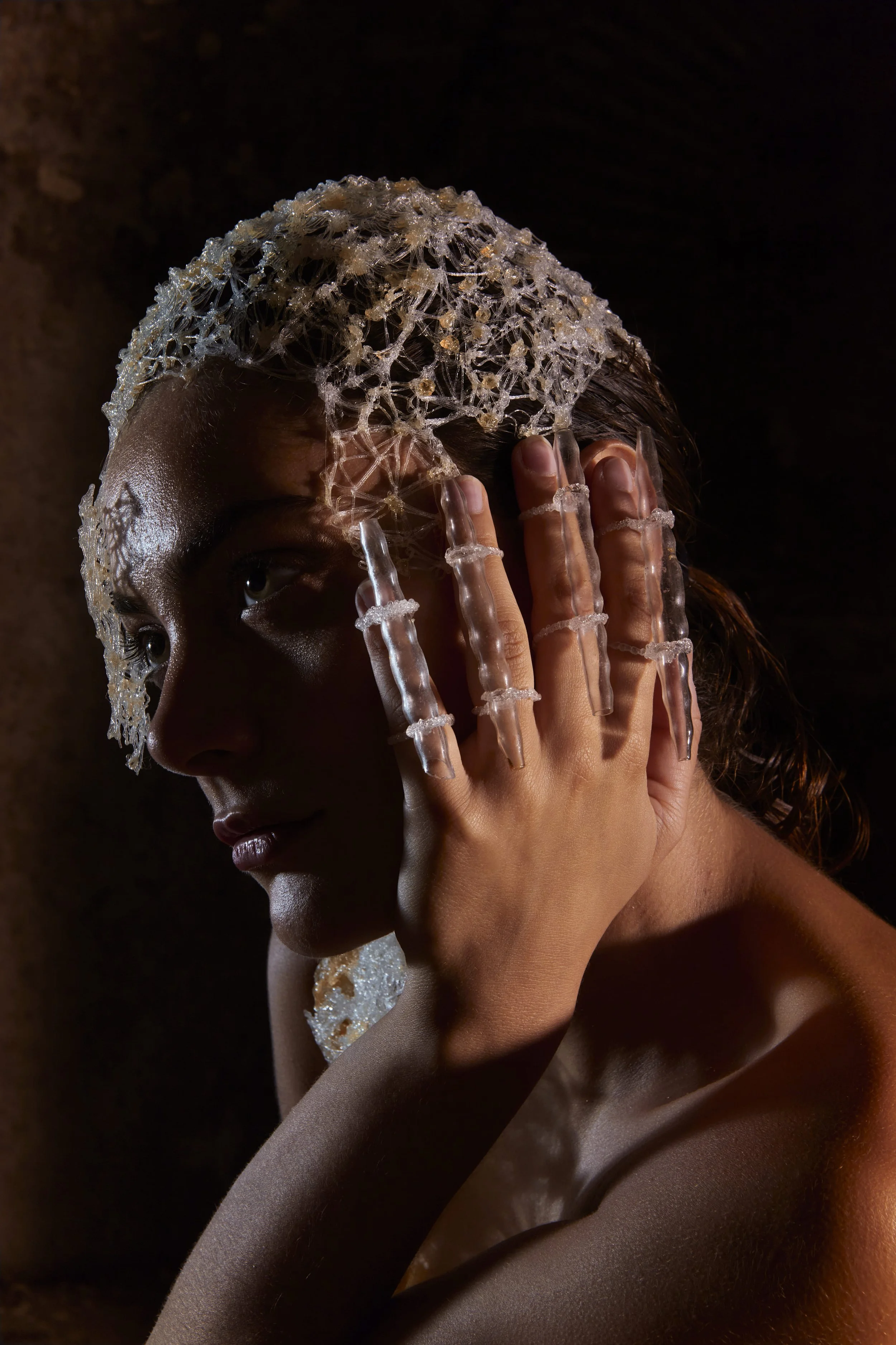 As a result of this research, a series of garments understood as second skins that, like nature, are in continuous transformation. These become skins like ointments, when they interact with the bodies that inhabit them. Layers of protection that take us back to Antiquity to rethink, from the contemporary, the ecological complexity that surrounds us.