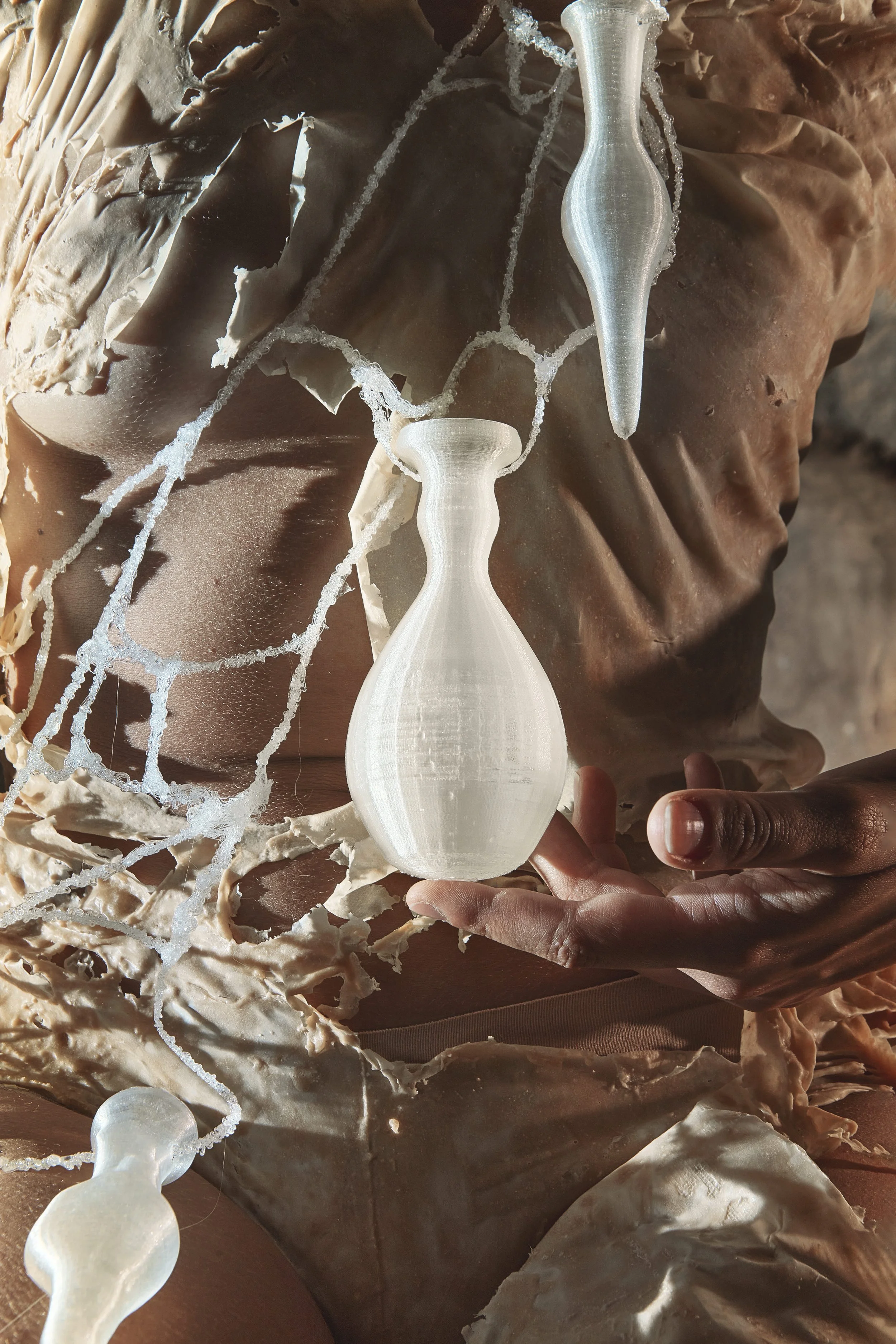 Garment and accesories created with natural wax and colofonian resin, 3d printting manually.