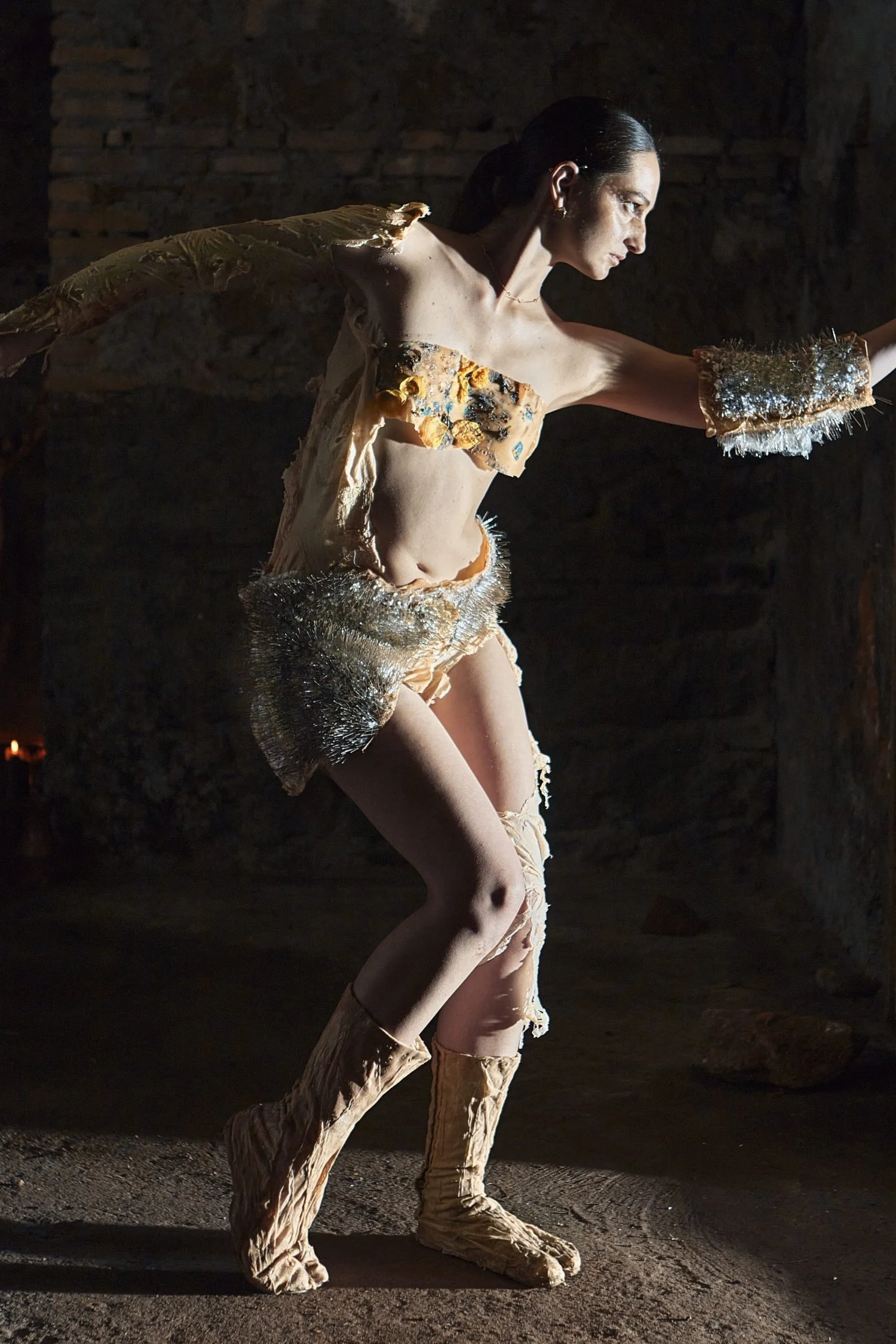 A fashion performance activates these second skins giving visibility to the space that Ovid ignores: the care ritual. In this natural location, dancers get dressed and undressed, change their skin with intimate movements that require some other gestures that, like the garments, are made of body and matter.